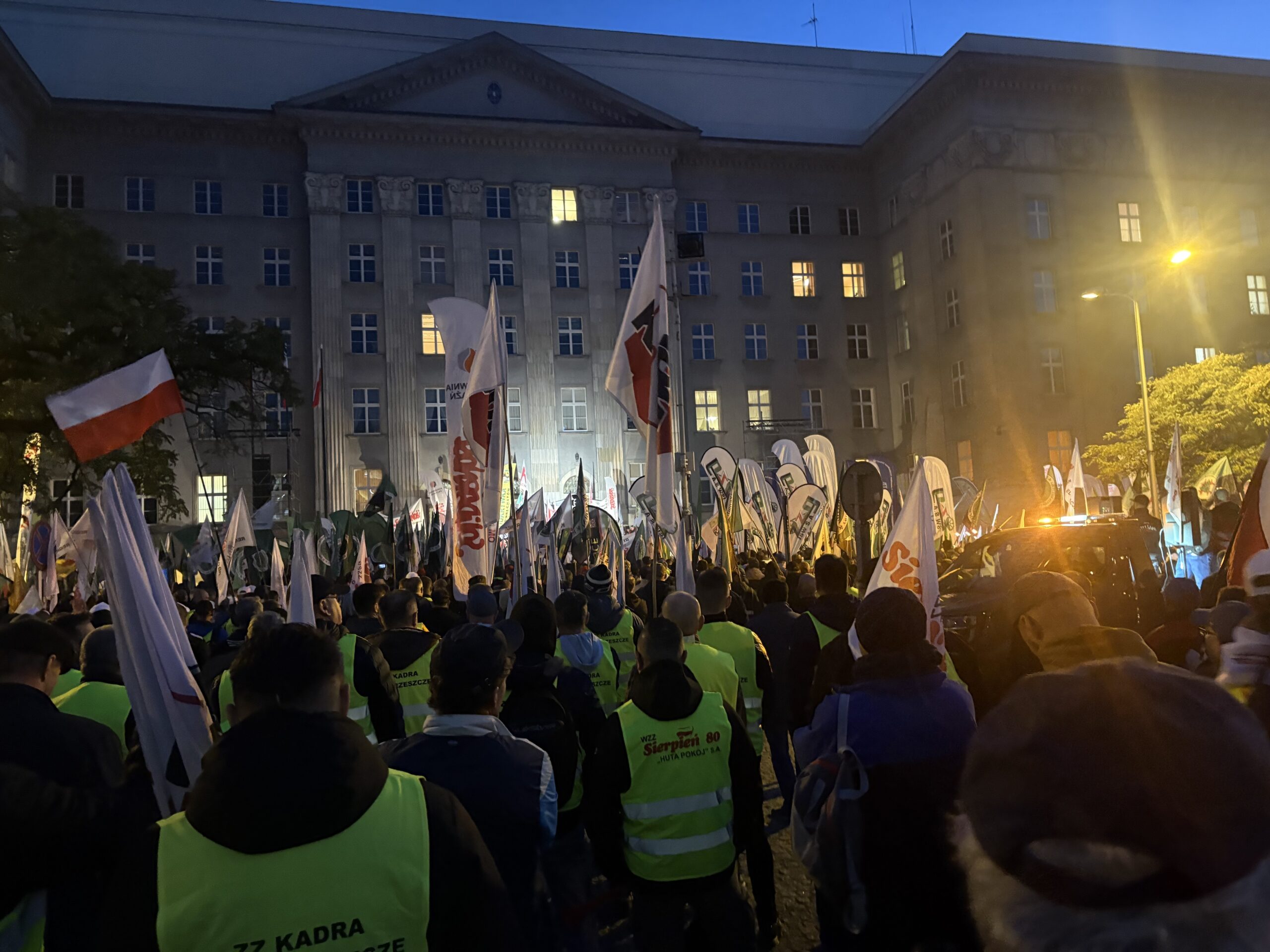 ŚLĄSKIE: Tysiące związkowców przeszły we wtorek ulicami Katowic w proteście przeciwko polityce Zielonego Ładu. W „marszu gwiaździstym” uczestniczyli przedstawiciele Solidarności, OPZZ, Forum Związków Zawodowych i Sierpnia 80, którzy domagali się „obrony Śląska i przemysłu”. Demonstracja sparaliżowała centrum miasta – wstrzymano ruch tramwajów i autobusów. Liderzy związkowi, m.in. Dominik Kolorz i Bogusław Ziętek, oskarżyli unijną politykę klimatyczną o niszczenie gospodarki i żądali rewizji systemu opłat za emisje CO₂. Na pl. Sejmu Śląskiego złożono petycję do premiera Donalda Tuska o zmianę polityki przemysłowej.